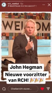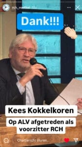 Hij dank iedereen voor het jarenlange vertrouwen. Hij neemt afscheid als voorzitter, maar zal altijd beschikbaar blijven in het geven van adviezen. Hij heeft nog wel drie wensen en dat is dat zijn kleinkinderen in het eerste van RCH komen, dat er een nieuwe keuken komt en dat de lening (nieuwe kleedkamers) afgelost wordt.