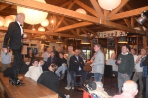 Een nieuwjaarsborrel zonder toespraakje is niet mogelijk, dus John klom op de tafel en wenste iedereen namens het bestuur een mooi en gezond 2025 en daarbij ook en zo vredig mogelijk 2025.