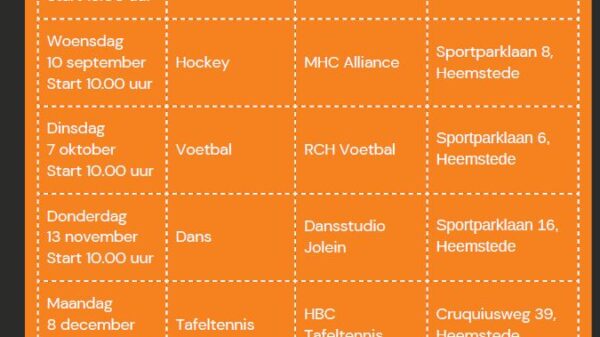 Sport on tour Heemstede (Dinsdag 7 oktober 10.00 uur op RCH)