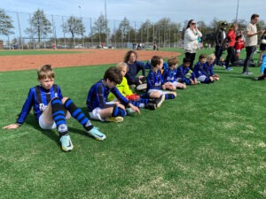 Gelukkig konden we 10 minuten voor tijd alsnog gebruik maken van een goal om de keeper in te spelen. Bij het inspelen zag coach al wat vermoeidheid en kinderen die last van de warmte hadden. Het zou toch niet zo’n wedstrijd worden wel?