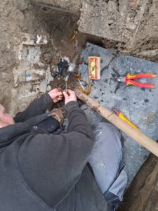 De kabel loopt onder de grond, dus moest daar een gespecialiseerd bedrijf voor komen om de breuk te traceren en te repareren.