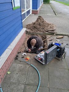 De kabel loopt onder de grond, dus moest daar een gespecialiseerd bedrijf voor komen om de breuk te traceren en te repareren.