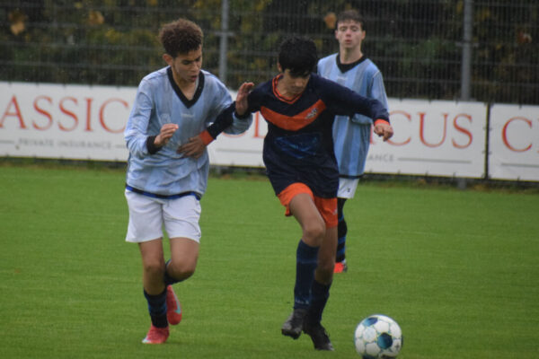 Zaterdag 1 november — eindelijk weer een competitiewedstrijd! Na vier gemakkelijke overwinningen in de 2e klasse is de O14-1 deze keer ingedeeld in de 1e klasse. Deze dag stond de thuiswedstrijd tegen VVC op het programma, een vereniging met veel jeugdteams.