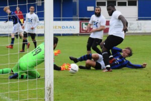 Een paar minuten na de 3-3 toch wel de mooiste goal van deze middag. Met een fraaie kopbal uit een voorzet werd de 4-3 gescoord. RCH controleerde de wedstrijd.