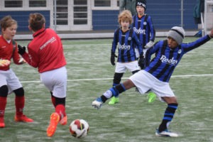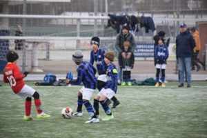 We begonnen de wedstrijd sterk door al na 5 minuten te scoren. Dit gaf enig comfort. Niet lang daarna werd ook de tweede goal gemaakt. Dit hadden we ook wel nodig want onze jongens begonnen al snel te jammeren over de kou. Meerdere van onze jongens konden het ijskoude weer moeilijk verdragen. Een enkeling, ik noem geen namen, liep zelfs boos naar het clubhuis om op te warmen.