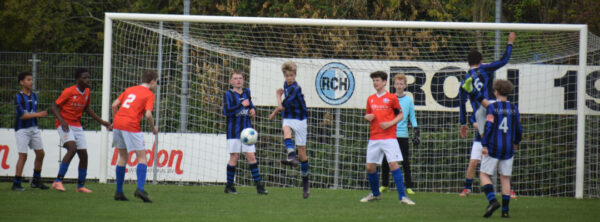 Om 10.00 uur klonk het beginsignaal op het hoofdveld, onder de bezielende leiding van scheidsrechter Ike. Normaal gesproken hebben de jongens even nodig om op gang te komen, maar vandaag was dat niet het geval. RCH begon fel en nam direct het initiatief, duidelijk sterker in de duels dan Hoofddorp. De enige kritische noot in de beginfase was dat de vele kansen niet werden benut, waardoor het lang 0-0 bleef. Toch viel de verdiende openingstreffer na een snelle counter van RCH. De ban was gebroken, en doelpunt nummer twee en drie volgden al snel.