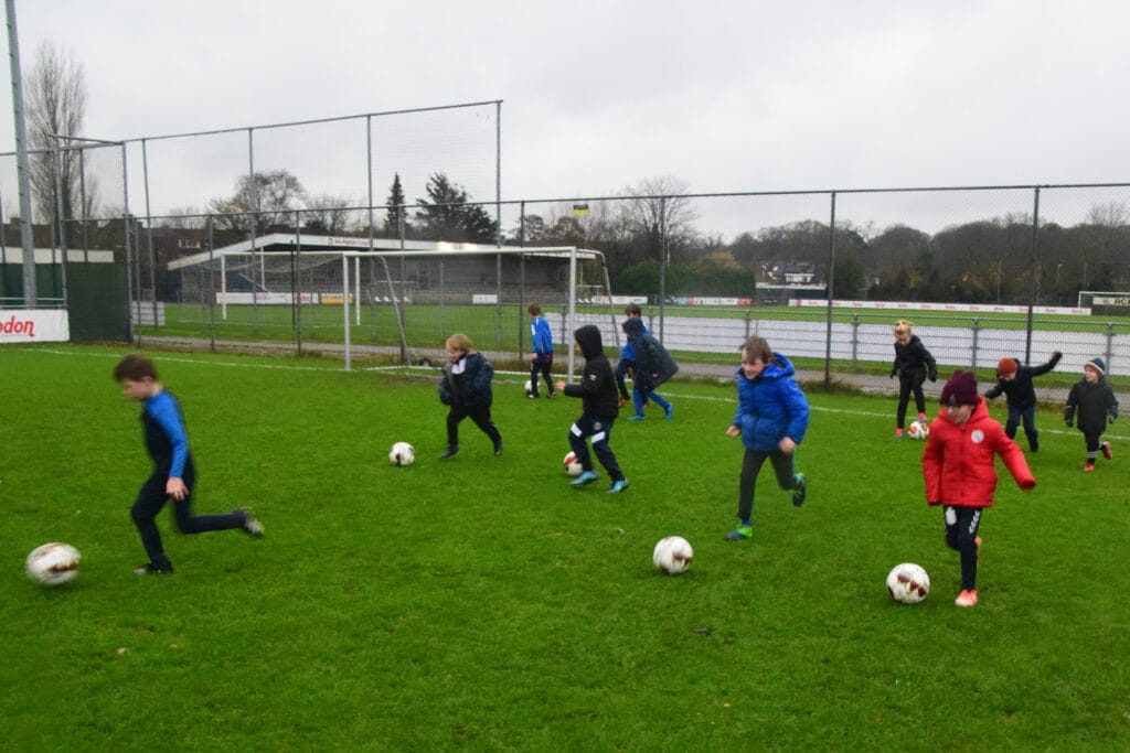 Gelukkig kwam Sinterklaas niet voor niets, want er hobbelden toch nog een 25 kinderen rond. Traditiegetrouw voetballen de Pieten lekker mee met de training, maar binnen stond het drinken en de versnaperingen klaar, dus de hoogste tijd de warme kantine op te zoeken.