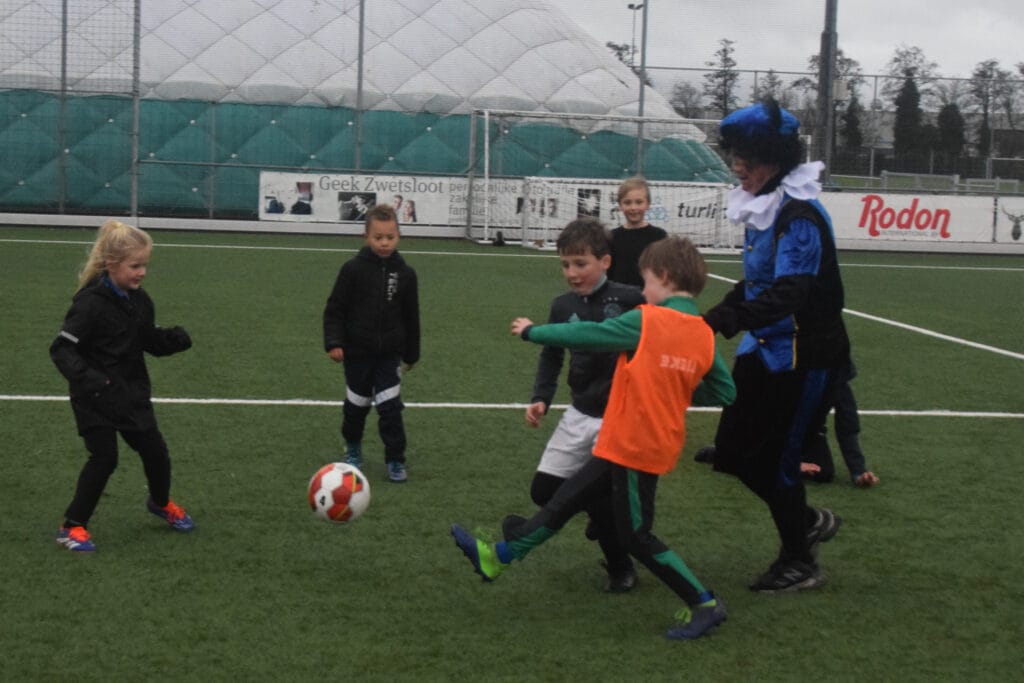 Sinterklaas en de Pieten werden gelijk aan de tand gevoeld en werd er flink over voetballen gepraat en de kinderen konden lekker hun eigen voetbalverhalen kwijt, al was het soms moeilijk praten met pepernoten in je mond. Drinken en chips stond klaar, gezongen werd er en alle kinderen kregen een heerlijke chocoladeletter van de Sint.